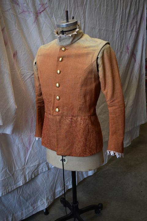 Lace was dyed to be within a range of a rust color that was inspired by the color palette of the set.